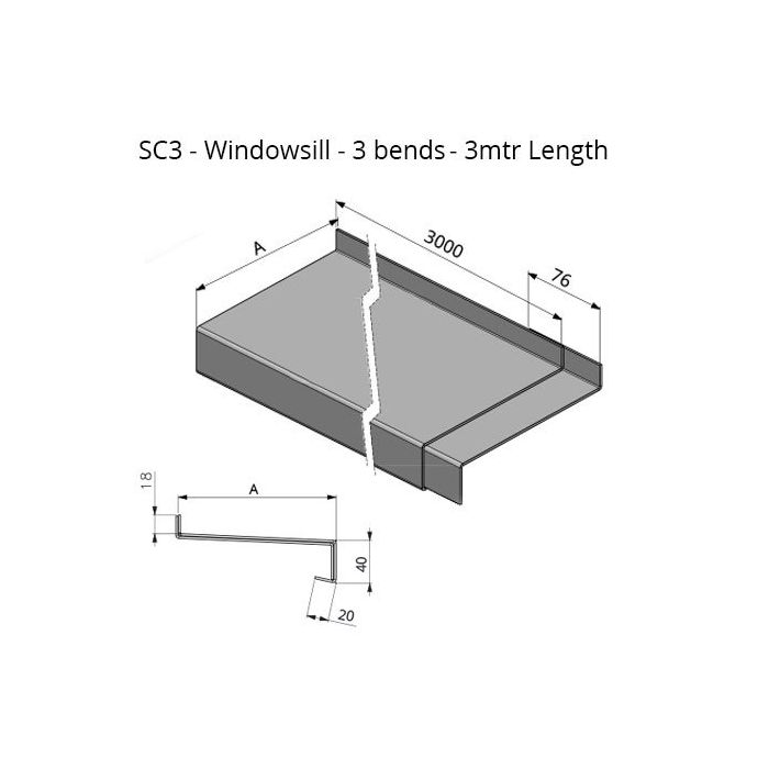201-300mm Girth (Cill Depth + All Bends) Skyline Aluminium Windowsill - 3 Bend - 3mtr Length - One of 26 Standard RAL Colours TBC